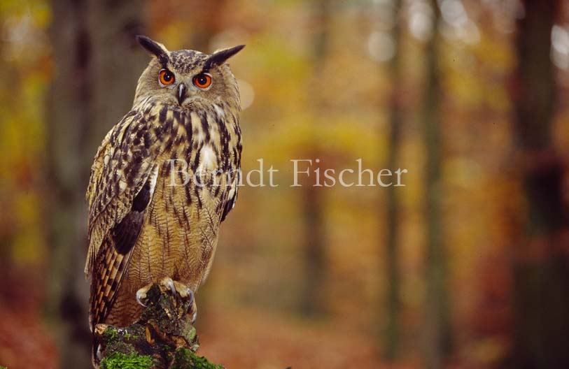 Uhu Eule sitzend Auge Federbüschel  - Zum Vergroessern klicken!