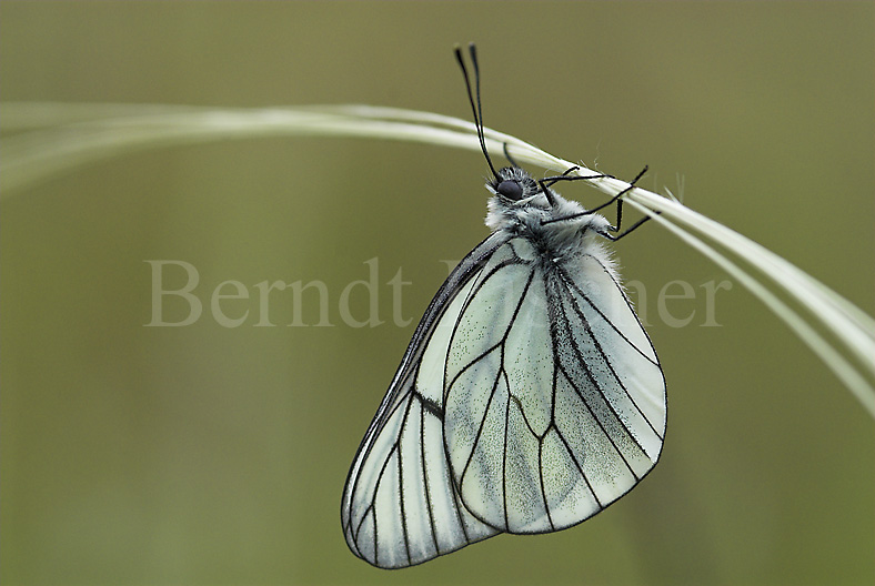 Baumweißling ruhend Federgras  - Zum Vergroessern klicken!