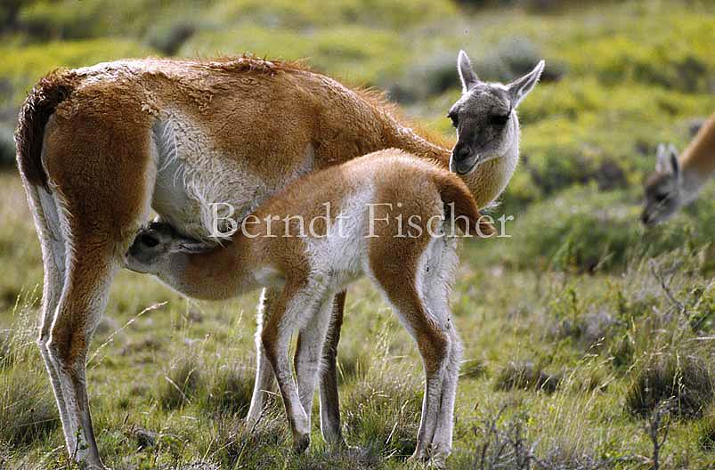 Guanako Mutter Jungtier säugend - Zum Vergroessern klicken!